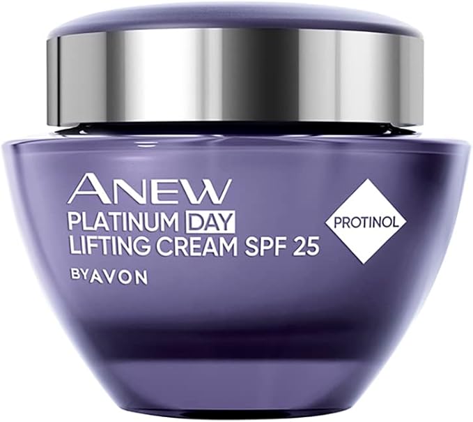 Avon Anew Platinum Day Lifting Cream SPF25 with Protinol - by Ultimate Things, white, 1.7 Fl Oz (Pack of 1). Ideal for ages 55+, The only Protinol technology in the world, 50ml. 1 offer from $39.99. Anew Ultimate Day Cream & Night Cream Anti-Wrinkle Skin Care Set of 2. Discover Youthful Beauty with AVON Anew Platinum Skincare Transform.