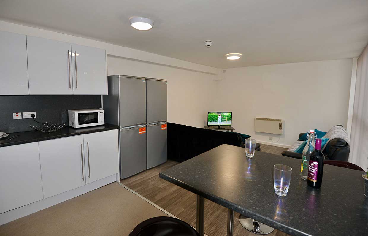 Your room. Our Carr Mills student accommodation complex is home to 298 students, sharing 5, 6 and 7-bed flats over 5 floors. Choose between deluxe double rooms, spacious en-suites rooms, or self-contained studio flats. All the rooms have been recently refurbished and offer good quality contemporary fixtures and fittings.
