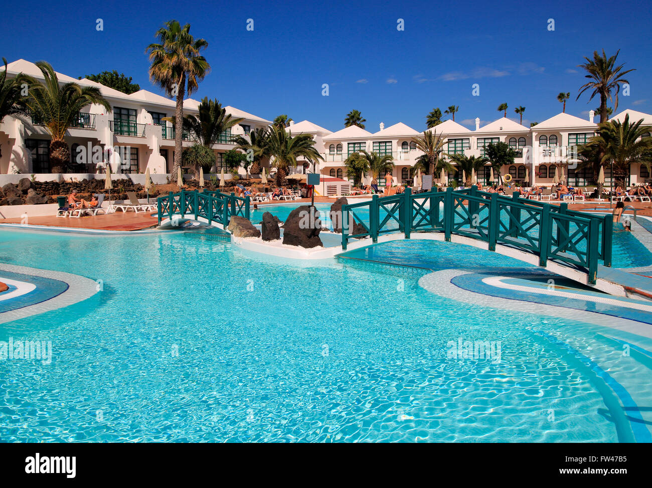 Swimming pool at H10 Ocean Suites hotel in Corralejo, Fuerteventura, Canary Islands, Spain Stock