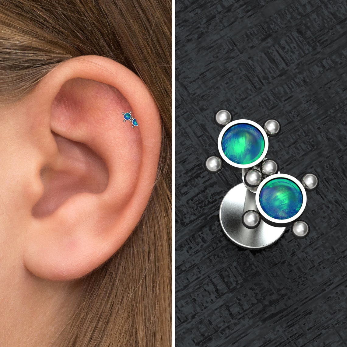 Titanium Flat Back Tragus Earring Opal Implant Grade Etsy